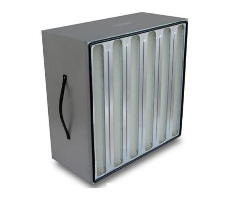 The high efficiency Mini-Pleat compact filters made up of water resistant micro-fine glass fiber media Or Synthetic media are available in a wide range of efficiencies from MERV 12 to MERV 16 (65% - 95%+ ). V cells are designed for use in Gas Turbine installations where highest degree of air cleanliness is required. The compact design, larger surface area and low initial resistance made it an Ideal alternative to ordinary Bag filters & Box type filters of the similar efficiencies. V-Cell compact filter models are also available with very high burst resistance, low pressure drop and high dust holding capacity for extreme operating conditions like Gas turbine air intake fine filtration etc.